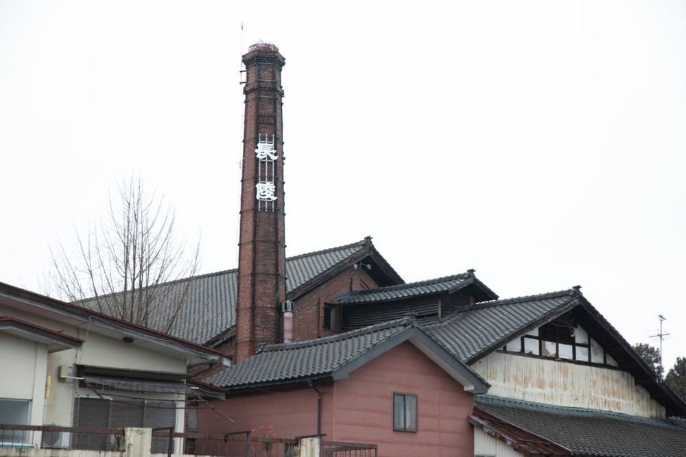 栖吉(すよし)川を渡ると目に飛び込んできたのは、煙突に書かれた「長陵」ののびやかな文字。20メートルはあるモダンで立派な煙突、レンガ造りの重厚な建物から、ただものでないオーラがただよっています。