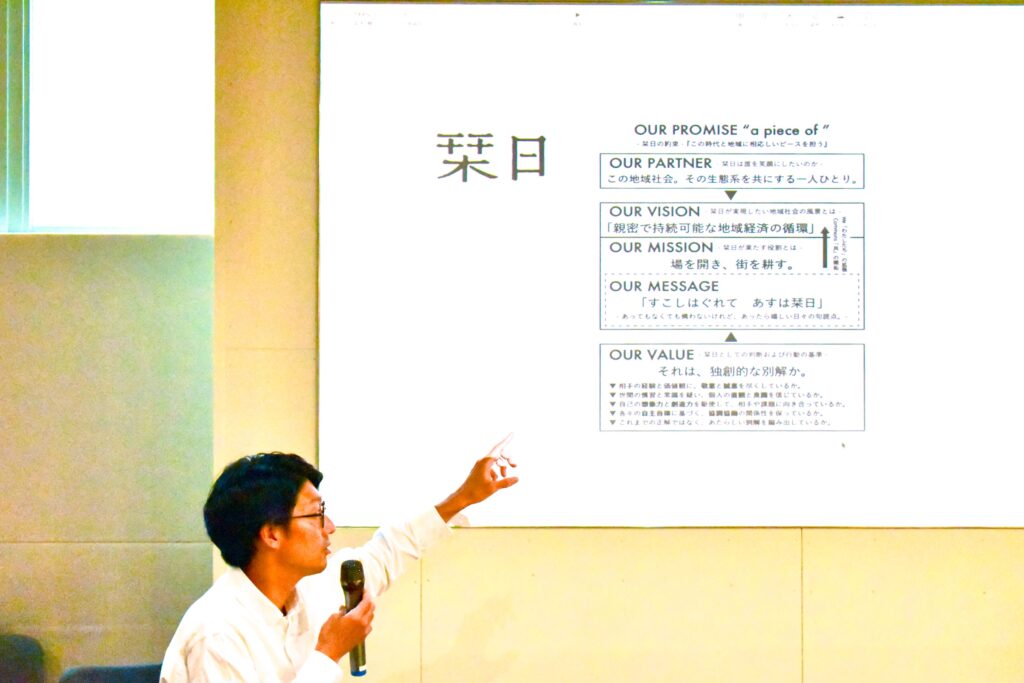 「場を開き、街を耕す」。栞日が掲げる自社のミッションについて、菊地さんは「『耕す』対象として当初は文化的な面を想定していたのですが、今はもっと広い意味でまちの多様性とか寛容性を耕すことが、僕らの使命なんじゃないかと気付き直したところがある。特に、銭湯をやり始めてからは強くそう感じています」と話しました。