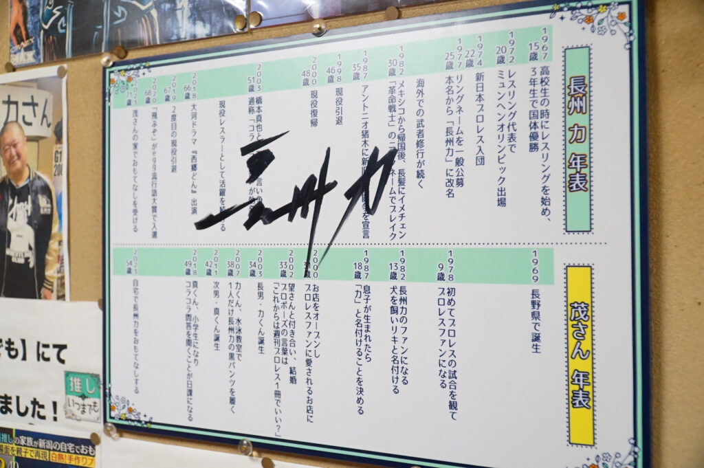 店に訪れたレスラーたちがサインや写真を残していってくれるので、それを見ながら試合の話で盛り上がったり、選手来店時のエピソードを女将から聞くのも、ファンにとっては楽しいひと時です。