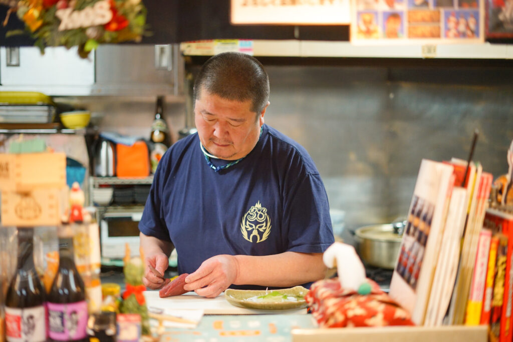 のみくい処みやは、料理担当の「マスター」こと宮本茂さんと、明るく話題豊富な「女将」こと望さんご夫妻が営む居酒屋です。茂さんは長野県須坂市生まれ。親の影響で小学生の頃からプロレスが好きで、年に一度、長野に来るプロレスの興業を見に行くのが楽しみにしていました。新日本プロレスが好きで、小学生のときにアントニオ猪木のファンになり、のちに長州力の大ファンに。学生時代から料理を作るが好きだったこともあり、高校卒業後は長野市の有名割烹で住み込みで働き、和食の料理人としての修行を積みました。30歳になる少し前、割烹を辞して別の店に移ったのち、1999年頃、縁あって新潟県へ。長岡で厨房に立つことになったそうです。