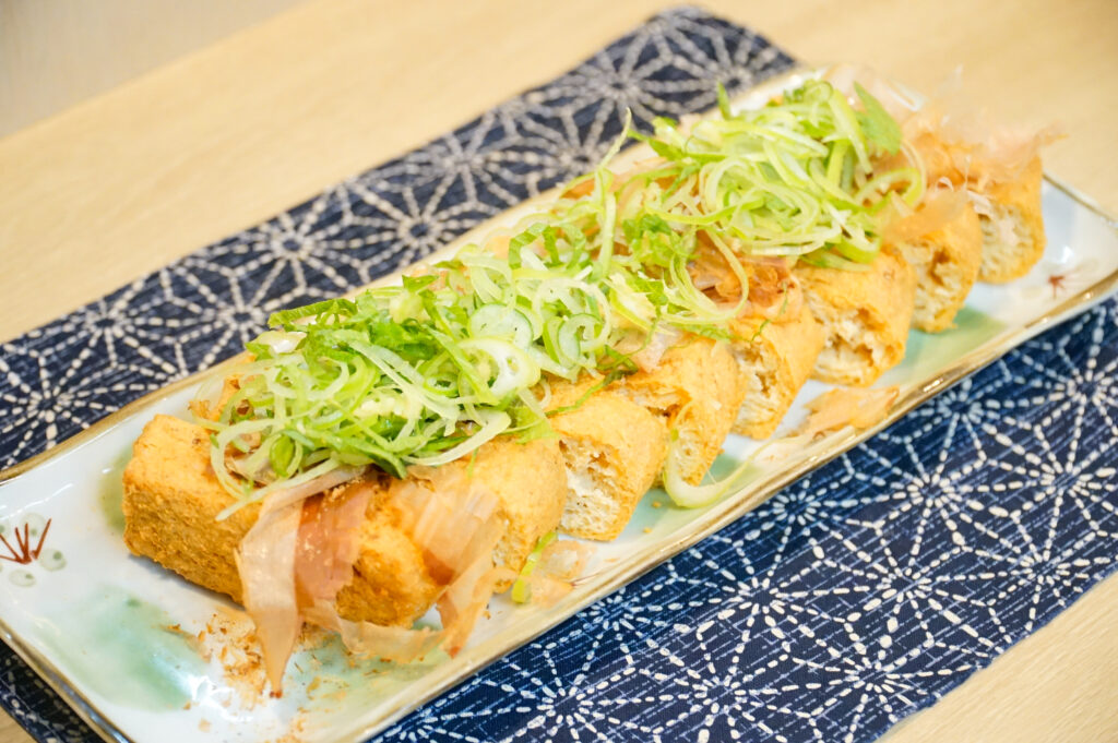 裏人気ともいえるのが、栃尾のジャンボ油揚げ。長岡では焼いたものが居酒屋の定番メニューですが、「みや」では焼くのではなく、揚げ直しをして出しています。だから、表面がバリッとしていて香ばしく、ちょっと驚きのおいしさ。